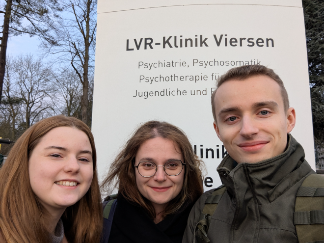 Today, Christina Neczewicz (left) and Joris Burger (right), doctoral research students at RWTH Aachen University, and Dr. Christiane Licht (center) had an appointment at the LVR-Klinik Viersen, recruiting additional forensic patients. We are looking forward to this coming collaboration regarding recruitment in Q01.